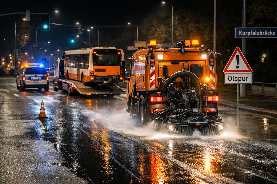 Am 13. Februar 2026 gegen 20:30 Uhr hinterließ ein defekter Linienbus eine ausgedehnte Ölspur durch mehrere Mannheimer Stadtteile. Die Reinigung dauerte bis in die Morgenstunden.