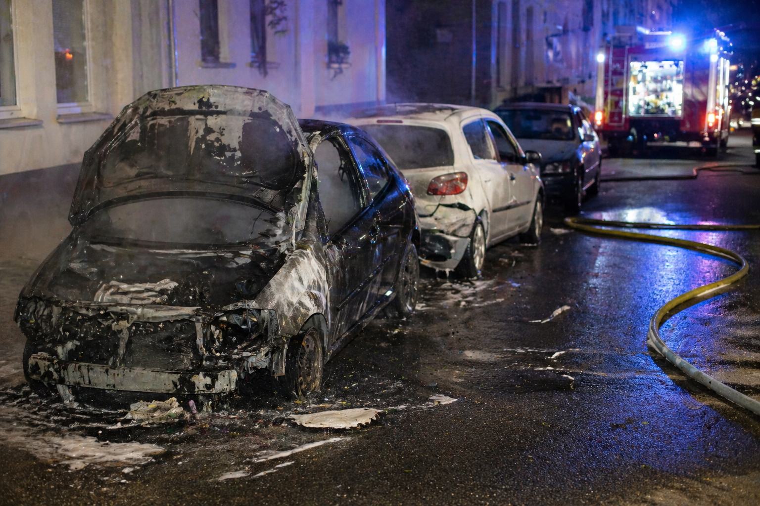 In der Nacht auf den 28. April 2026 geriet in der Wachtstraße ein geparktes Auto in Brand – das Fahrzeug rollte und beschädigte zwei weitere Wagen, verletzt wurde niemand.