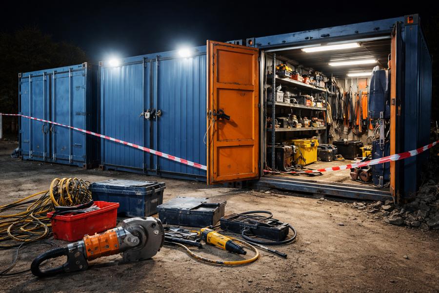 Unbekannte sind in der Nacht in einen Baucontainer eingedrungen und haben Arbeitsgeräte entwendet. Die Polizei bittet um Hinweise.