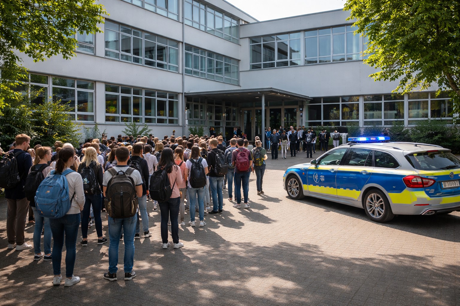 Schülerinnen und Schüler sowie Lehrkräfte verließen daraufhin vorsorglich das Gebäude...