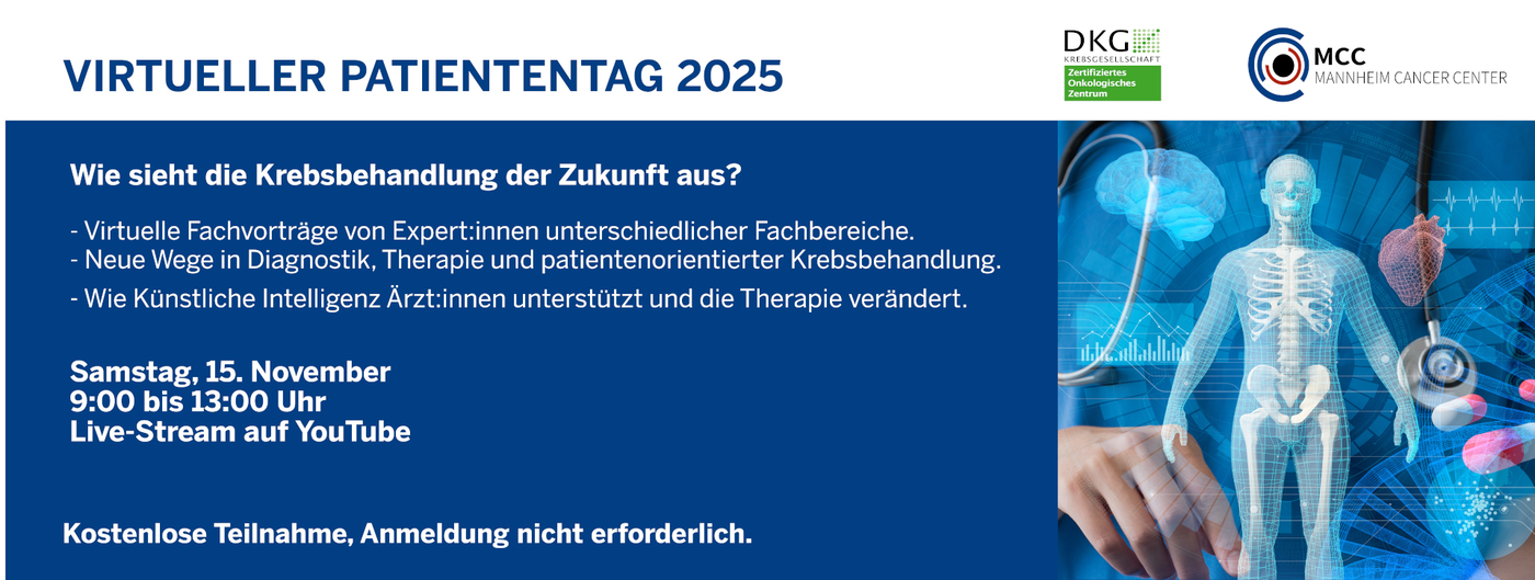 Am Samstag, 15. November 2025, lädt das Mannheim Cancer Center (MCC) zu einem Online-Patiententag ein, der sich der Frage widmet, wie Künstliche Intelligenz die Krebsmedizin von morgen verändern wird.
